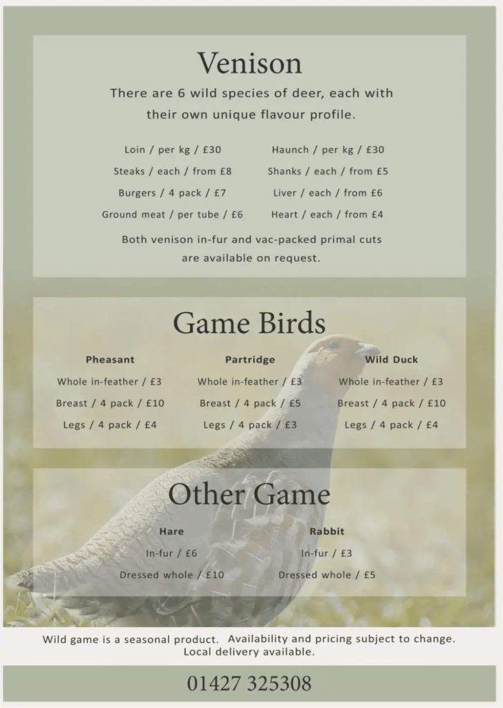 Sustainable, organic, healthy, naturally nutritious, low in fat, high in protein. All produce is ethically harvested and sourced locally from the countryside to your door or restaurant.